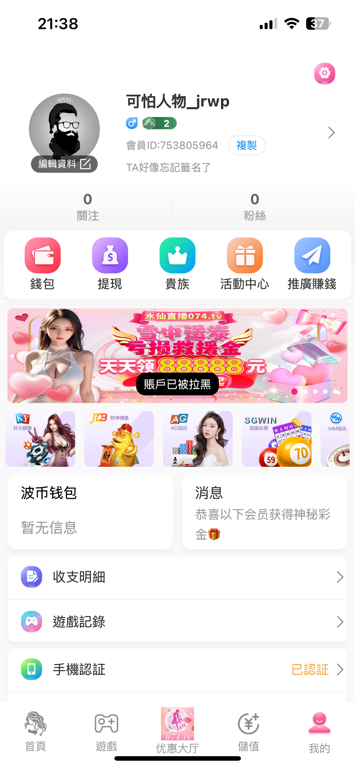 这个台子真的好杀 输了一千多进去 找朋友借了八百全输在米博上面 一点水都没有 不管玩什么都输钱 船长两块钱一只空转 没啥意思 输的干干净净