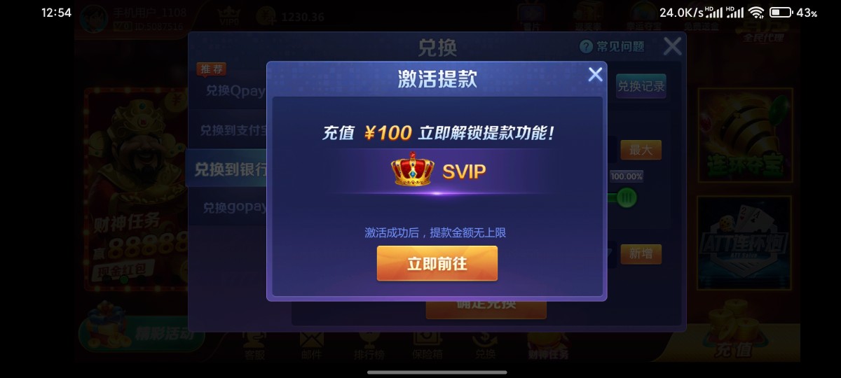 建设是因为前两个月上了一百分 派出所打电话不到两天就不能用了,另一个兴业是密聊直播特邀金8块出了450 过一个多星期就不能使用了