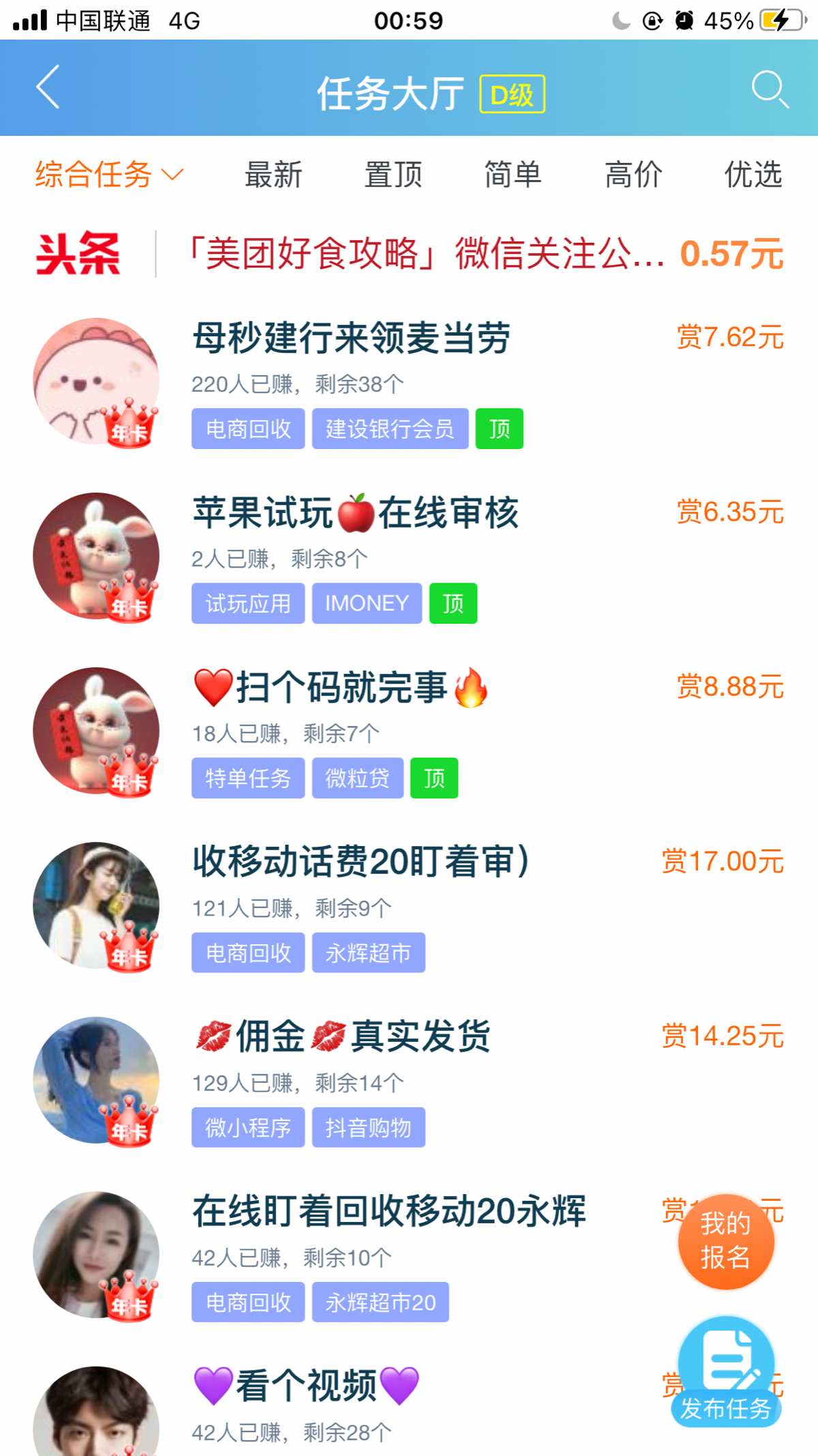 活动详情:注册下载APP自行查看各类任务,按照步骤来就行,一个任务根据要求跟难度的不同有几块到几百佣金。