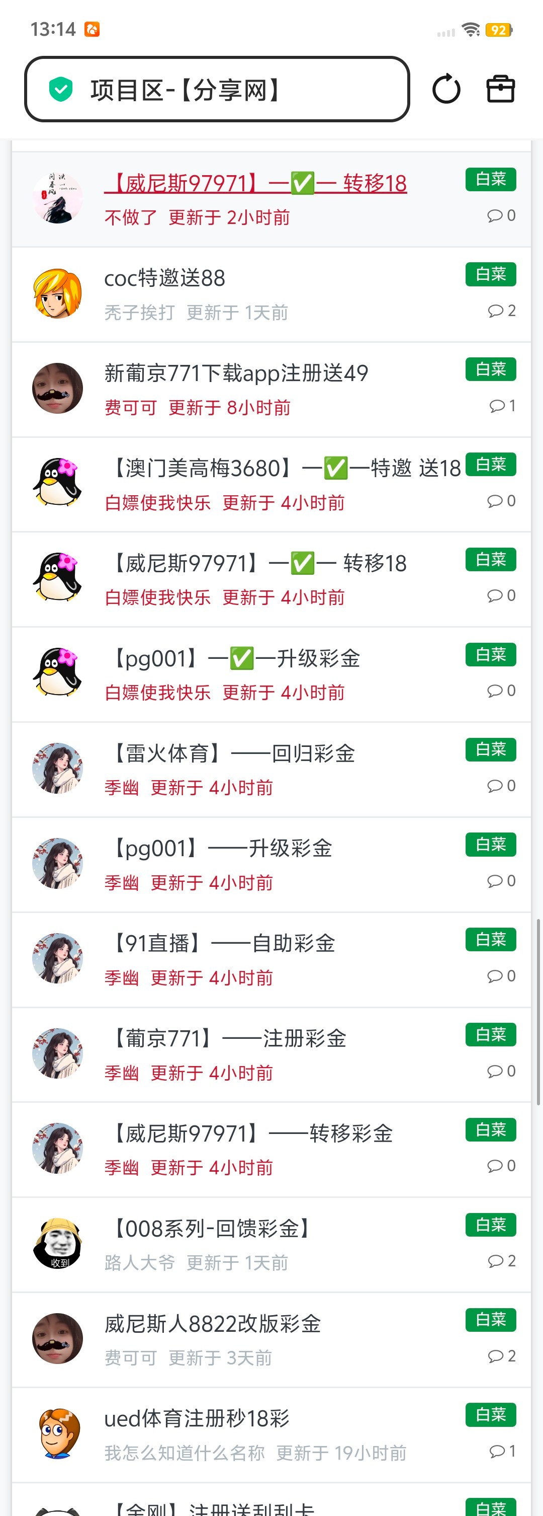 分享网致力打造全网最大的白嫖论坛,与狗庄斗智斗勇,让海外各大平台公司头痛畏惧,我们打击了狗庄嚣张气焰破坏,狗庄国内生存环境做出一份力量,如他人需要请把我们的“家”分享给更多需要的老哥。