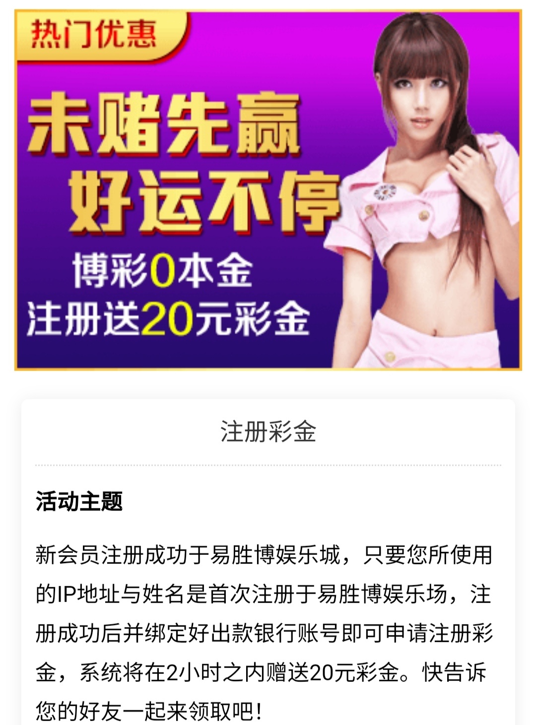 新用户注册完善资料,下方链接申请20彩金。