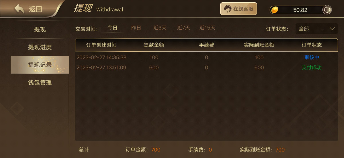 六百进袋,又提一百,还剩五十慢慢玩