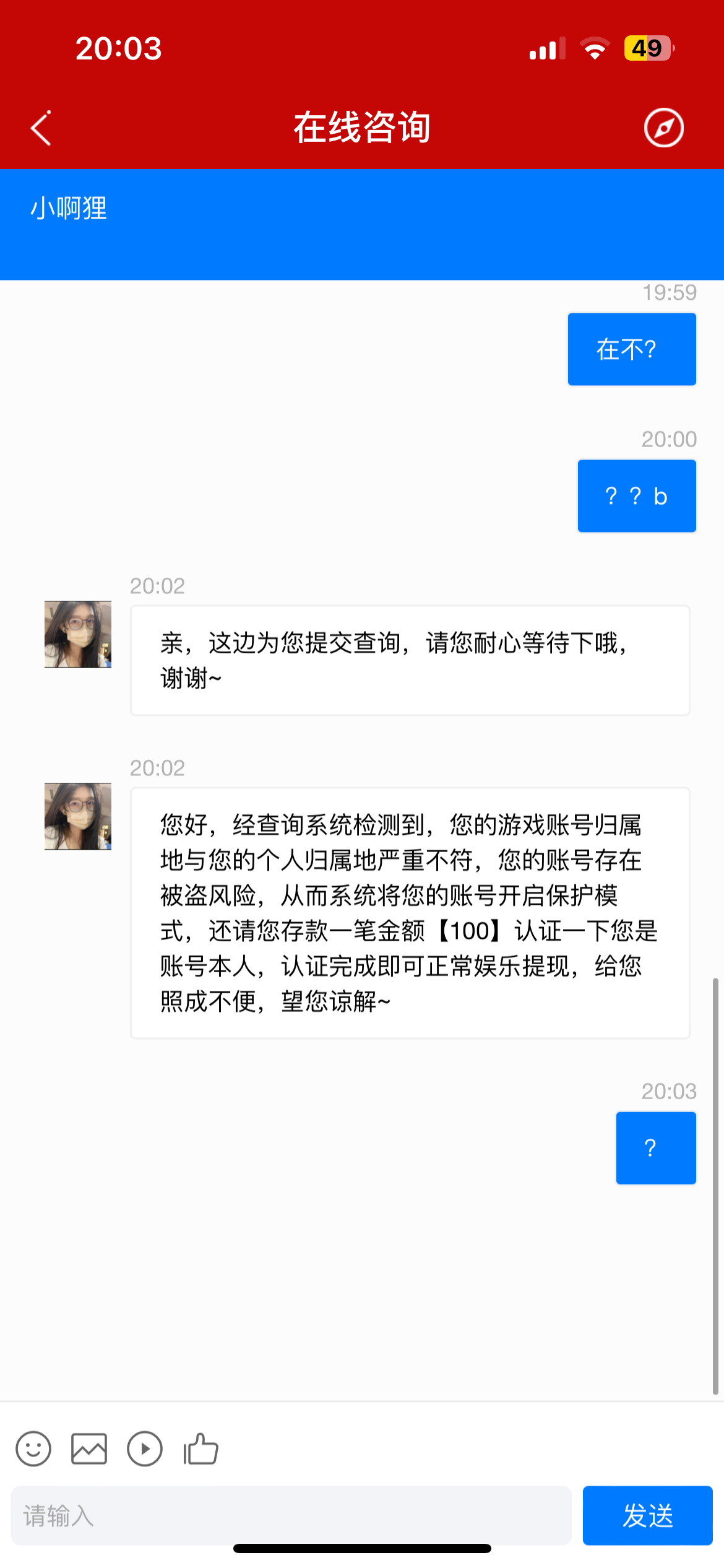 12打到400,提现退回让打三倍水,打满三杯水,剩一百,提现退回让充一百认证本人。黑比黑比