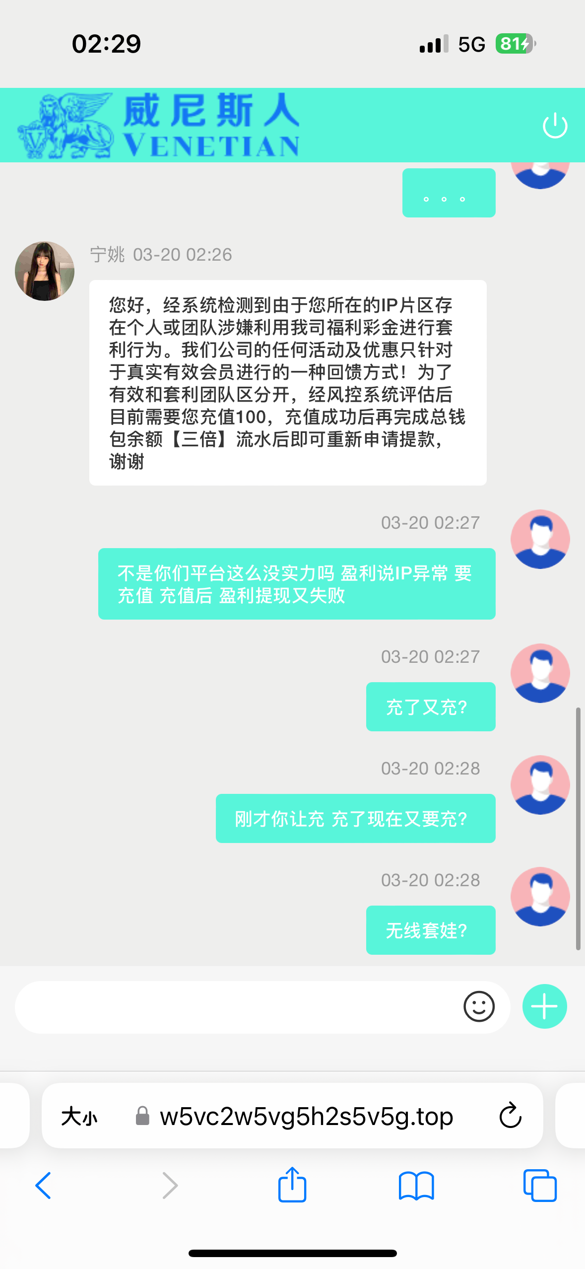 签到彩金打100不给提 让充100 充了一百又IP异常在充一百 无线套娃