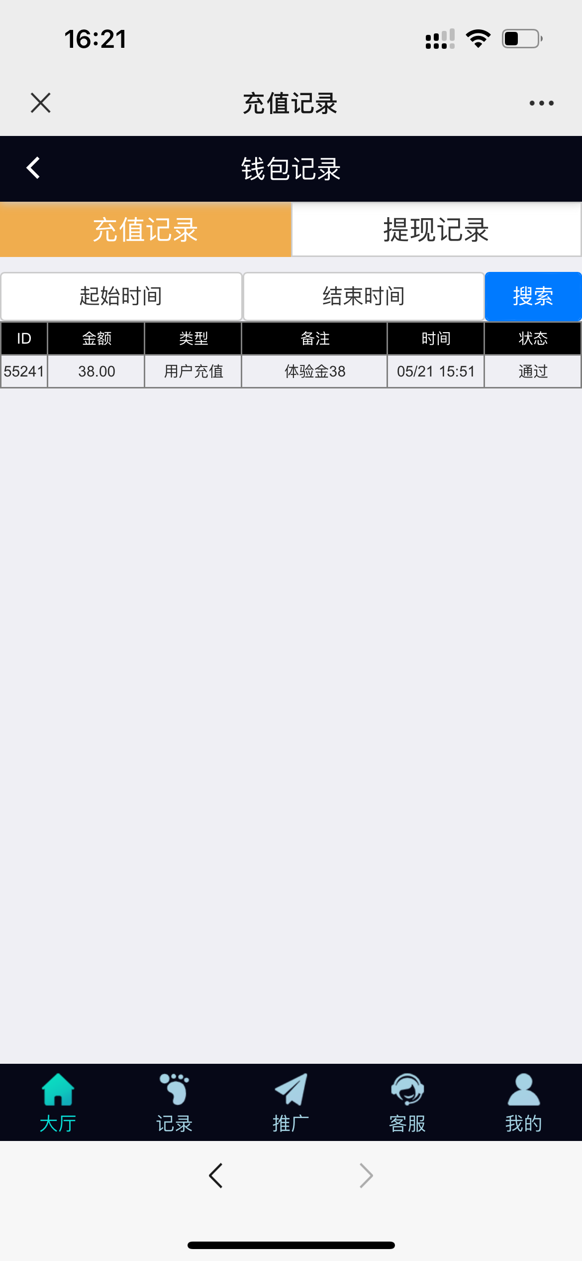注册账号登陆联系客服添加微信体验金客服发ID,充值里提交38体验金