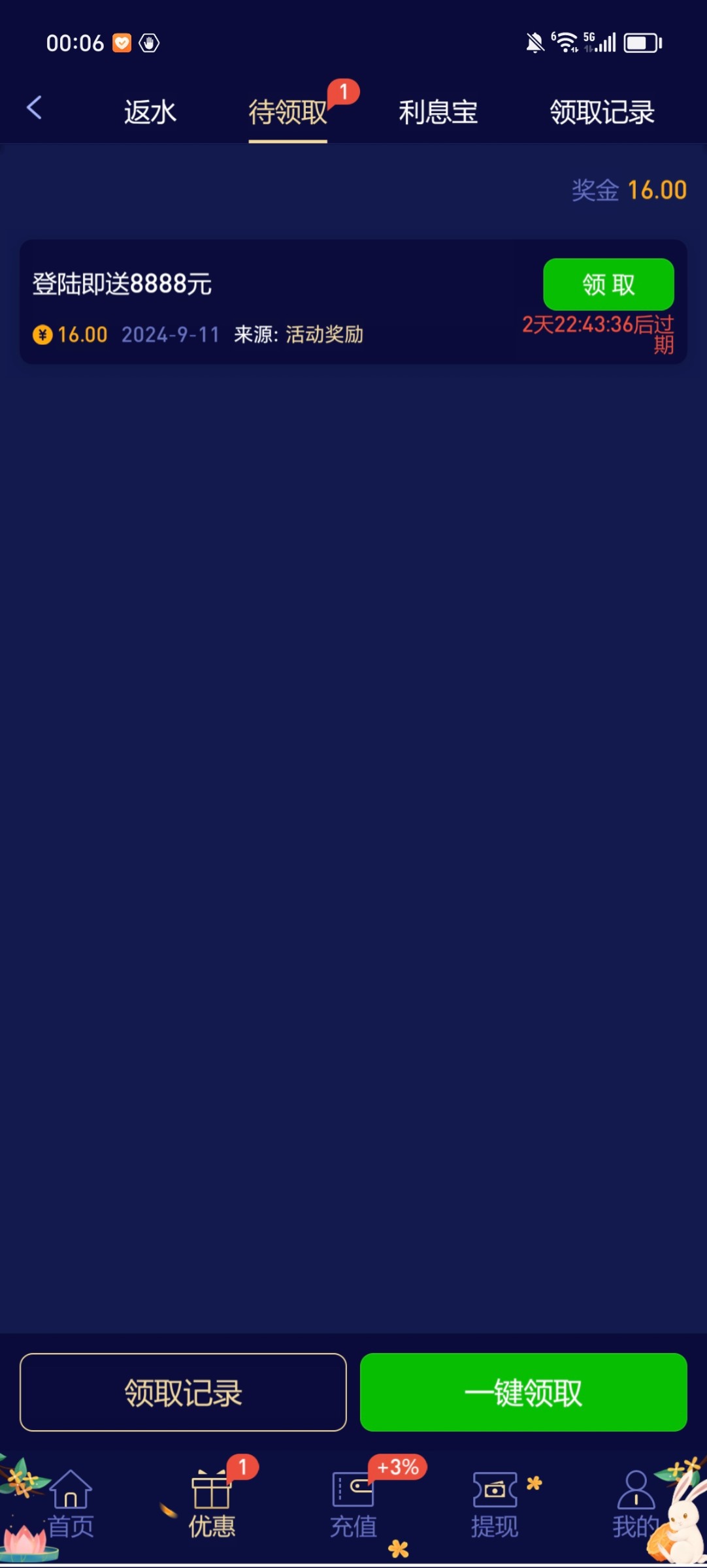这种模板有号的兄弟登录就有16-36,只要是11号之前注册的应该都有,昨天维护了一天,平台送维护彩金,这几个是我送到的,你们自己去看看有没有