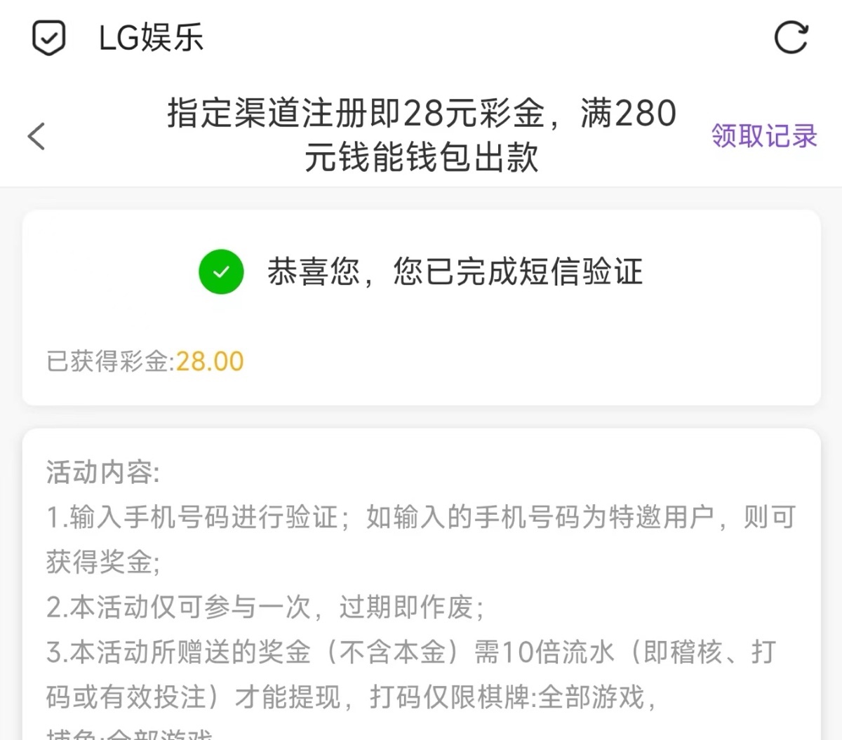 新用户注册优惠里自助申请秒送28/280提现 只能提钱能