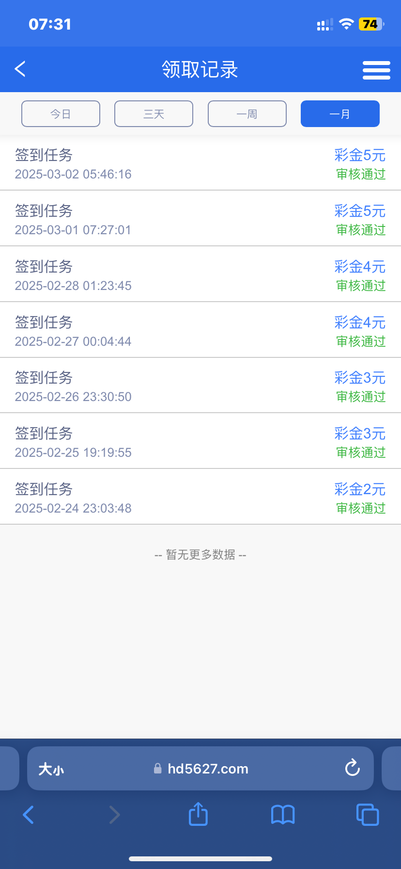 项目规则: 新用户每天签到送几块,可以攒着一块打