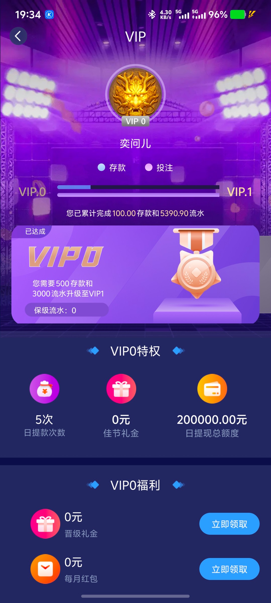 新用户首存100送100,充值后未下注前