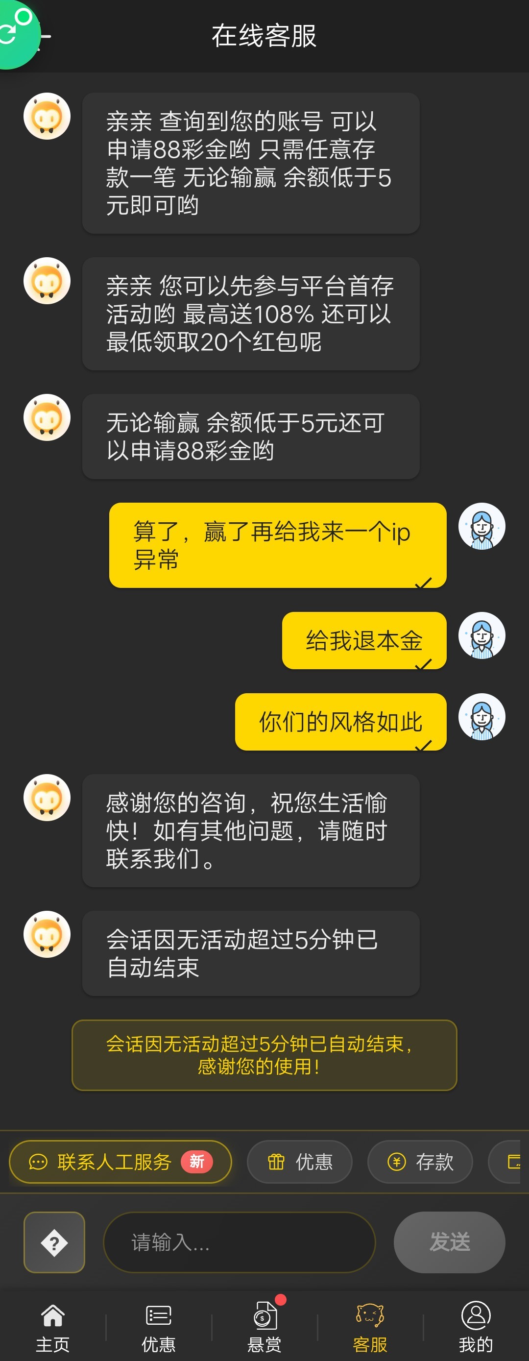 这台赢了退本金,能退本金都算好的,黑了你你也没脾气,能白嫖白嫖吧。