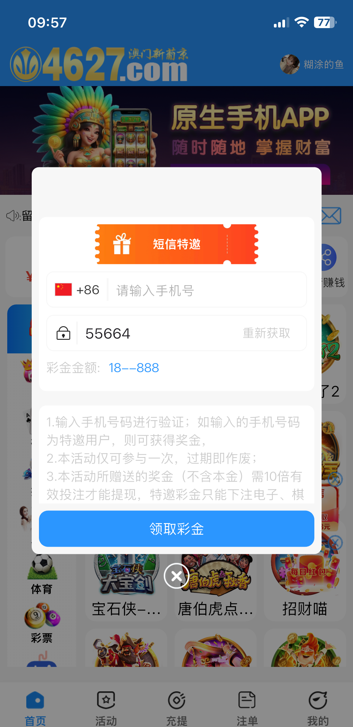 第一个 注册送12自助领取我领取到了,第二 可以碰瓷特邀我不是,第三 可以加他们旺旺签到8天有18, 第四 有以小搏大可以试试4627.com