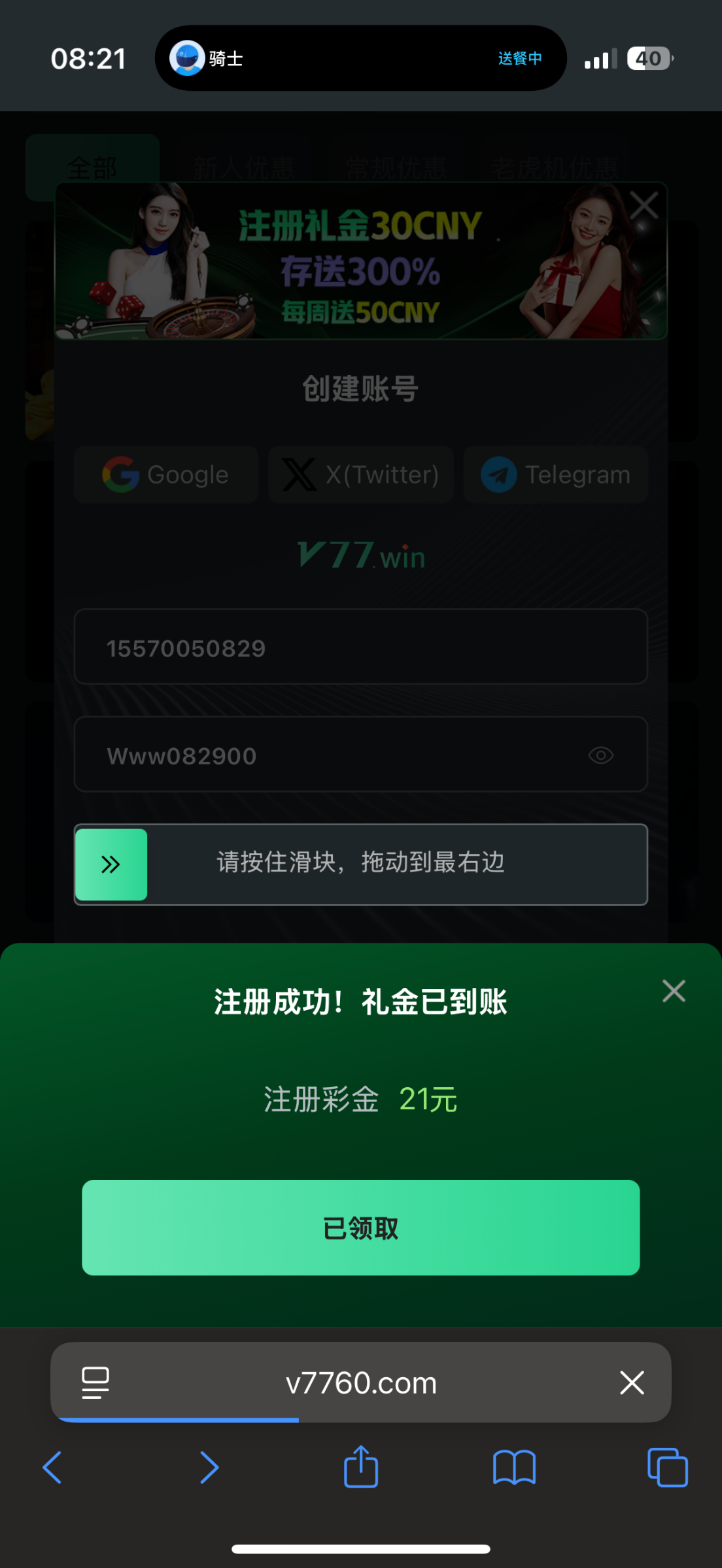 注册21彩金