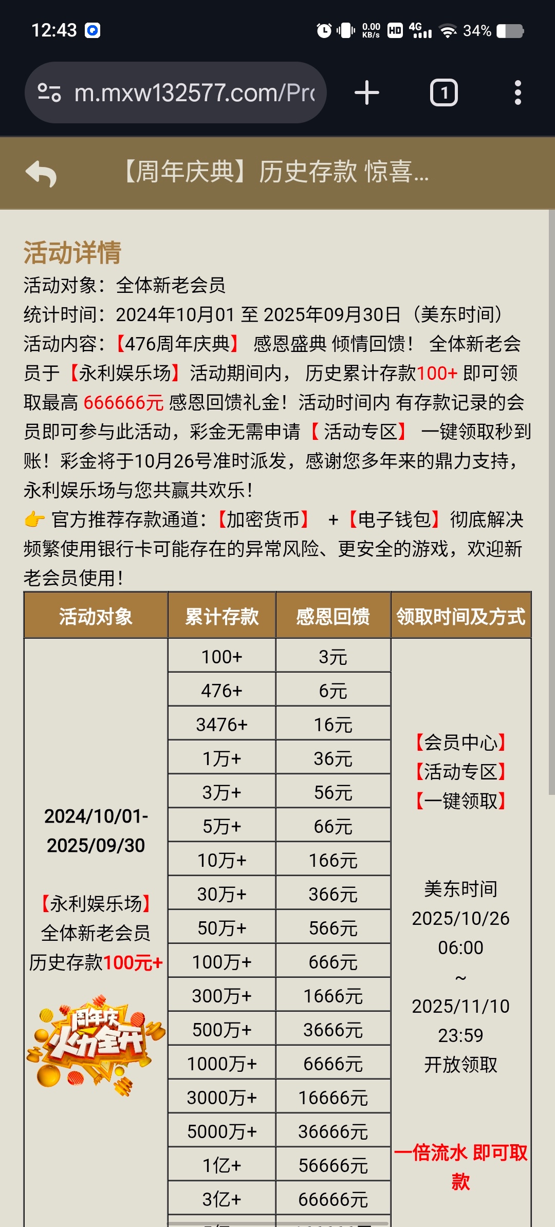 永利476周年庆,有充值过的去看看,下午6点派发!