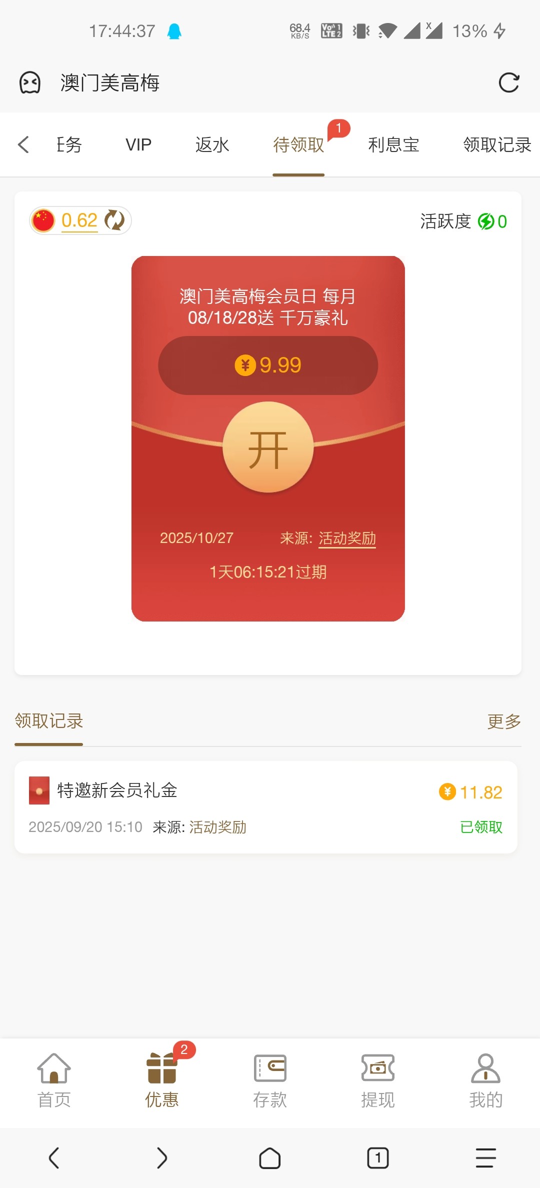 俩个号都有 各充值了十块 俩个都出了 赚300+
