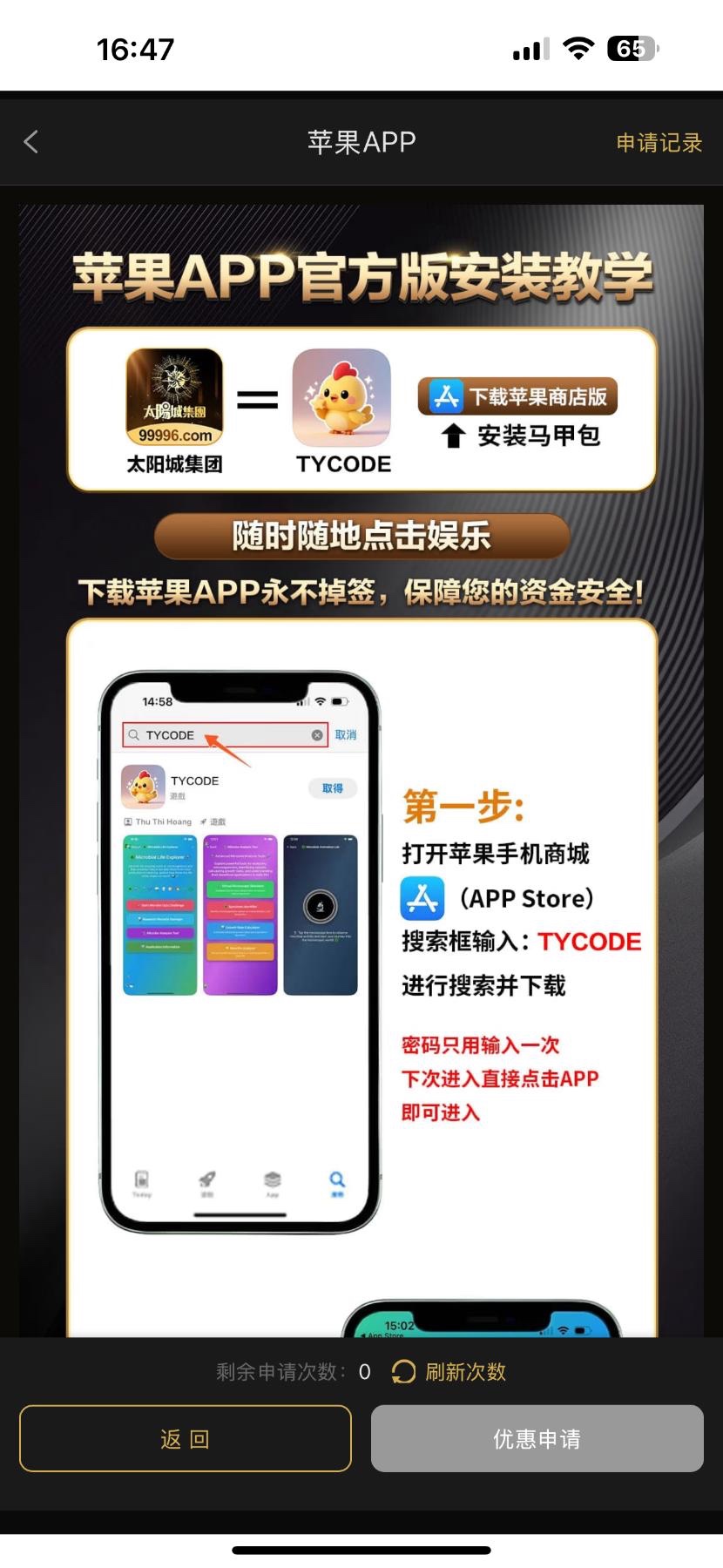 苹果安装app马甲可以申请 联系客服发截图就通过了