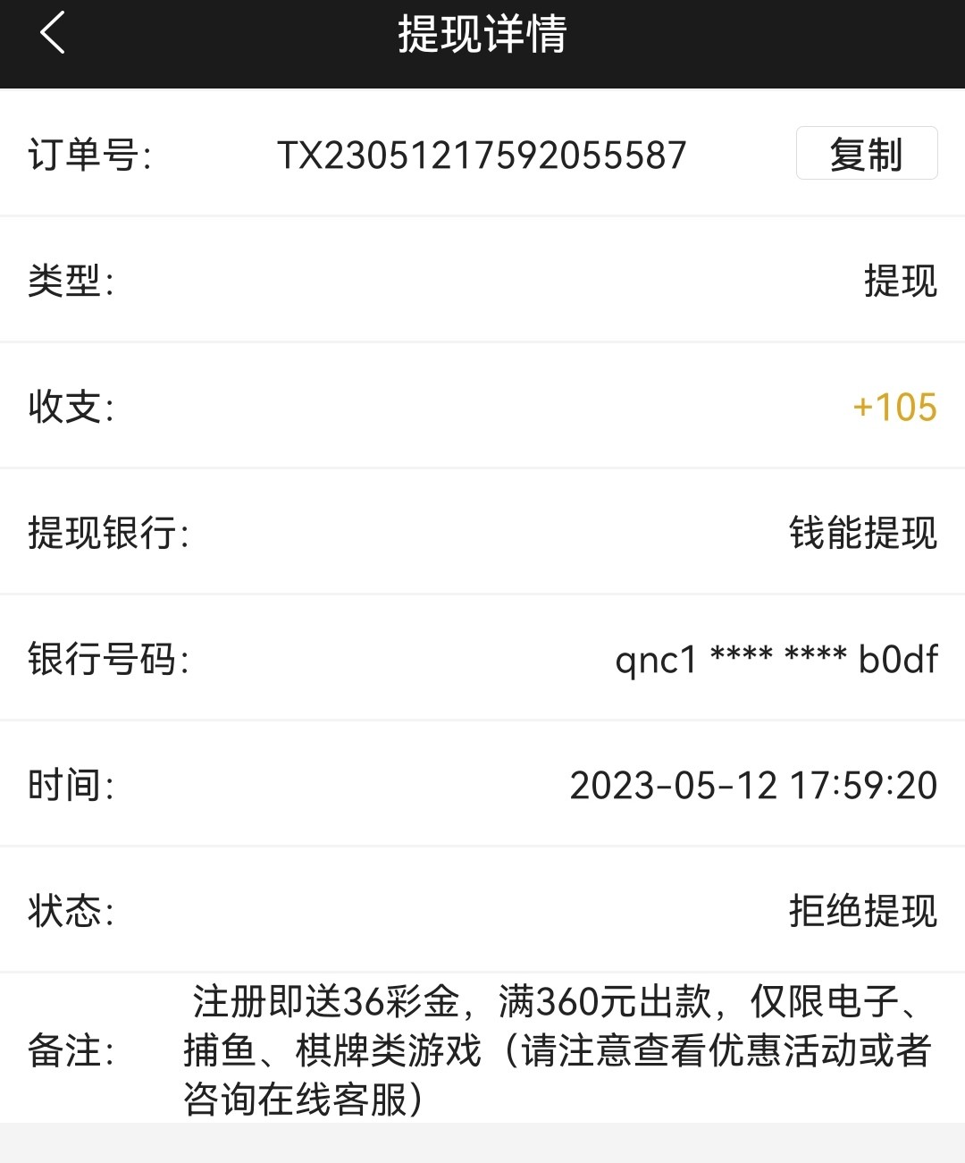 之前空汇,客服说是掉单了,找客服就退回了。打到200要360提现,实在不敢梭哈,就提现了,没想到第三次提现后扣到100让提现了。