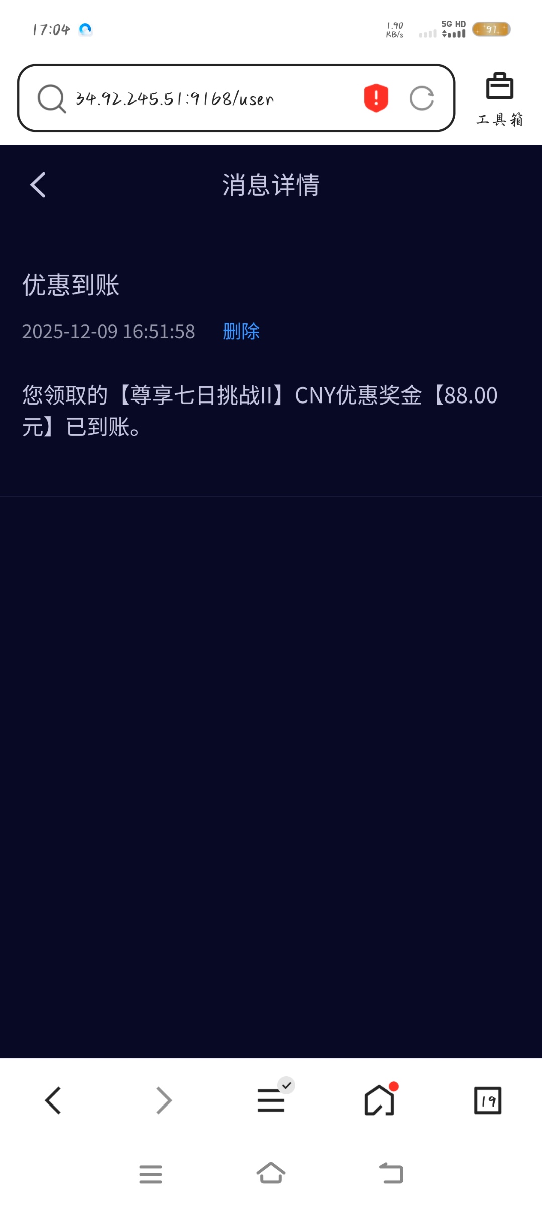 博天堂送88彩金 前几天有人发了 很多人没领取到  我APP登录也没有 昨天客服打电话过来说基本上人人都有 这个活动是连续送七天的 第一天88后边六天随机送 大家可以去看看  有的话反馈一下 没有别骂人谢谢