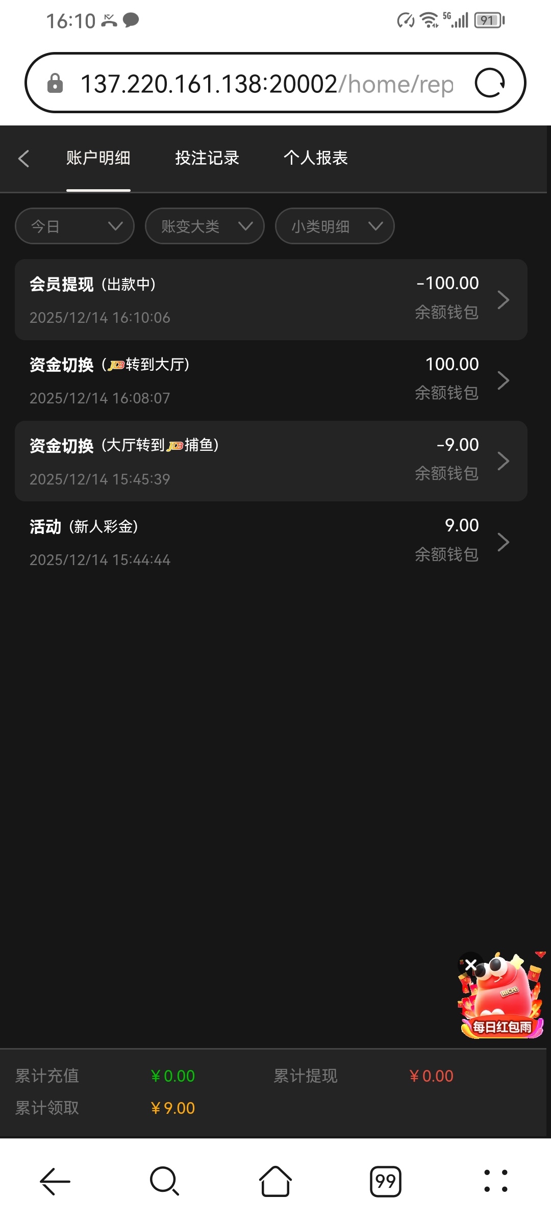 我是接到电话然后注册领的彩金