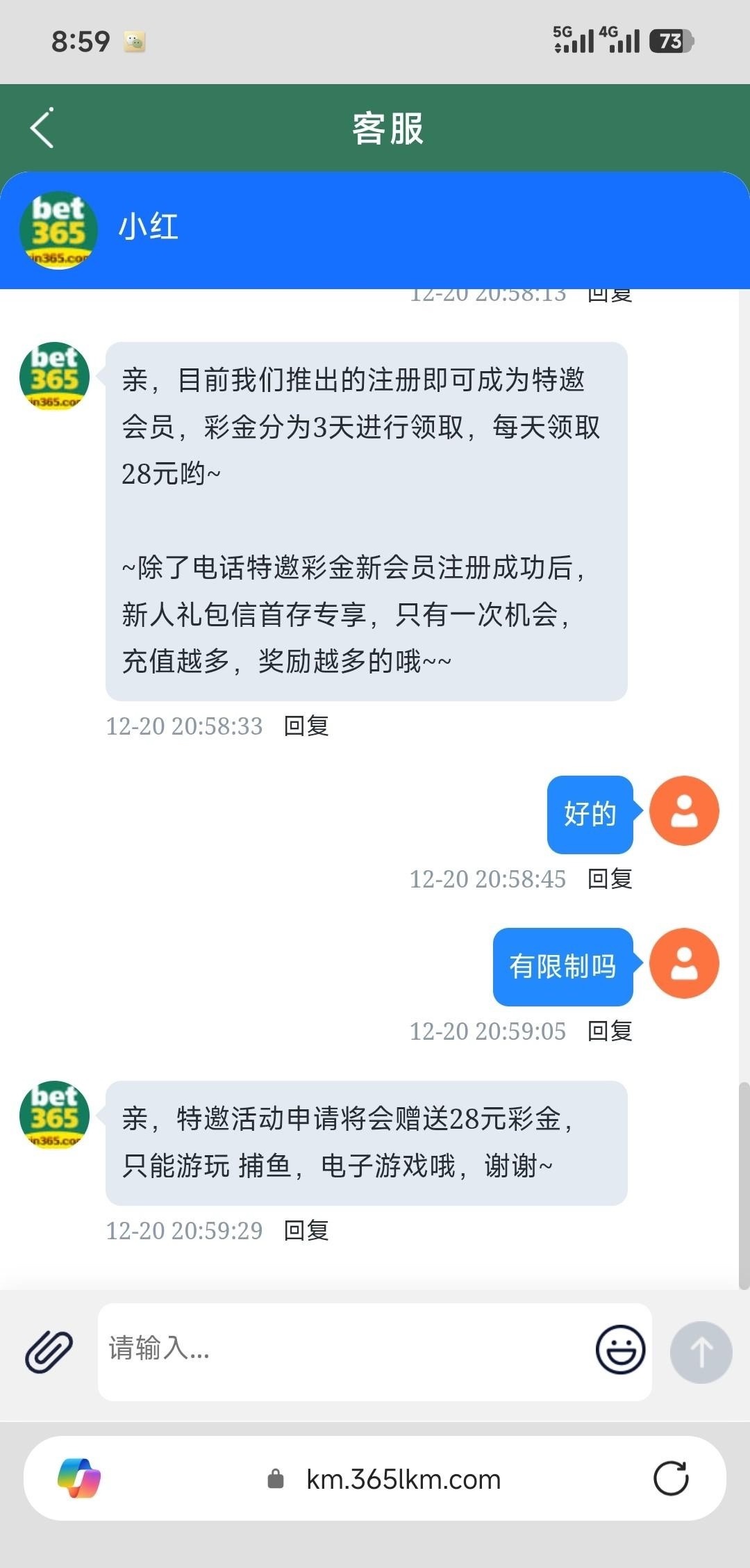 电话特邀送84-3天28 打电话说送88,注册了送28 送三天。链接365409.vip,可以去碰碰