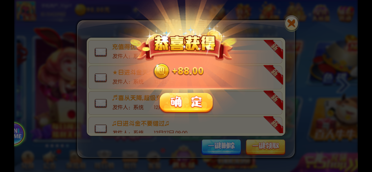 昨天注册的送了88,一把牛牛然后打老虎机刷够流水,提现100到账了,没有充值。