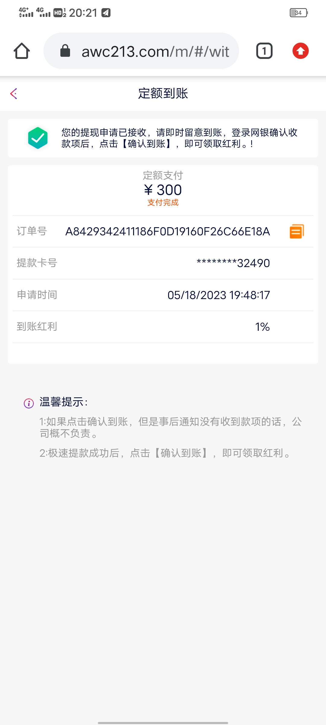 提现到账了