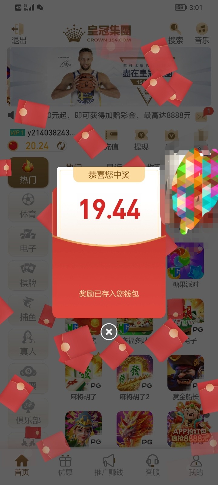15没有但有8.88我退出在进去就有一个红包弹出来