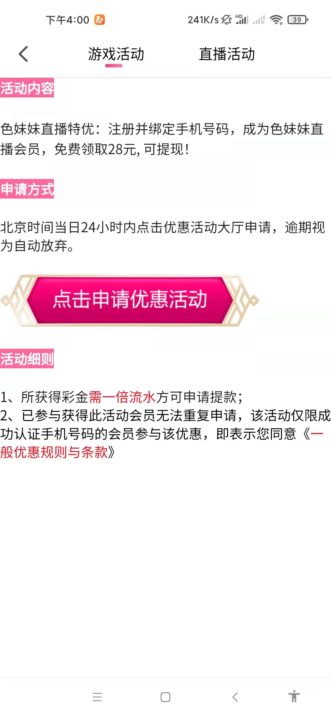1.新用户下载APP注册完善资料活动里自助申请注册彩金送28